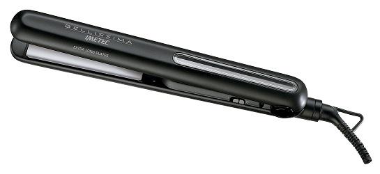 Placas largas 10x2.5. Para un liso rápido y perfecto. Placas revestidas en ceramica: máxima protección del cabello. Botón on/off. Temperatura máxima (210°c). Quick heating system. Multi-volt automatico 100-240v (ideal para viaje). Cable giratorio 1.8m.