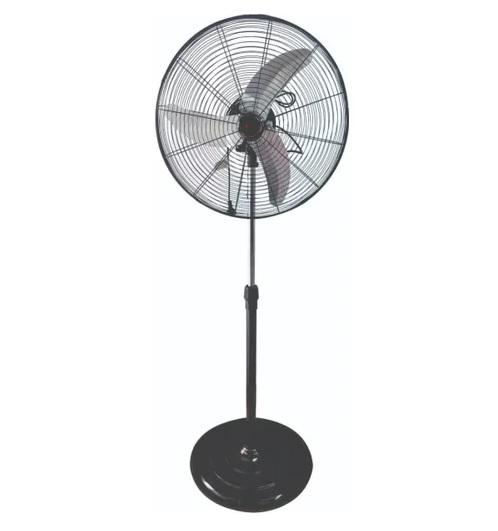 Altura 1,75mt. Pala metálica de 3 aspas. Reja cerrada. Cubre motor PVC. Base metálica de gran estabilidad. Color: Gris. 3 velocidades. Oscilante. Conexión: ficha reforzada con descarga a tierra. Barral exterior pintado, barral interior cromado.