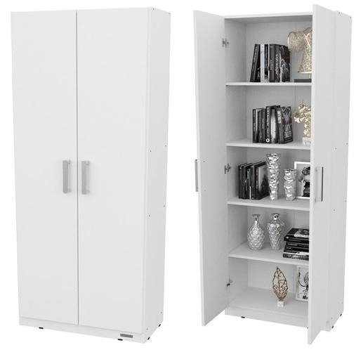 Biblioteca con puertas fabricada en melamina sobre MDP 15mm. 4 Estantes en el interior - 2 de altura regulable. Manijas plásticas color gris. Los productos vienen desarmados en caja, con todos los elementos para su instalación. Medidas: 60 x 29 x 1,81cm.