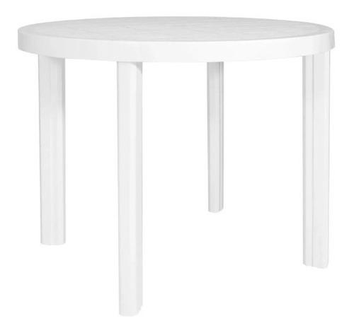 Mesa compuesta de material polipropileno con patas encastrables y de fácil armado. Diametro 90cm Alto 71cm Resistencia 30kg. Resistencia UV (Intemperie): Con filtro UV y filtro luz. No pierde propiedades mecánicas. Los colores de nuestros artículos no se degradan.