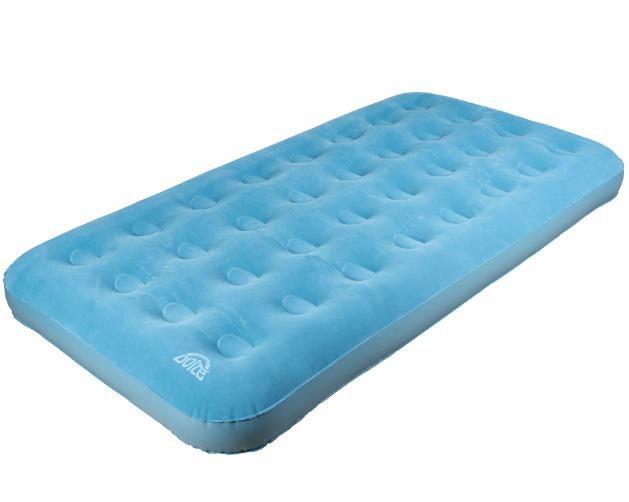 Colchón tamaño Twin (1 1/2 plaza) compatible con distintos infladores (no incluye inflador). Tienen un sistema hermético que evita la pérdida de aire ya que cuenta con una válvula de seguro. Su superficie antideslizante es suave y cómoda, y su altura permite que pueda ser usado con sábanas. Medidas: 191 Ancho 99 Alto 22cm.