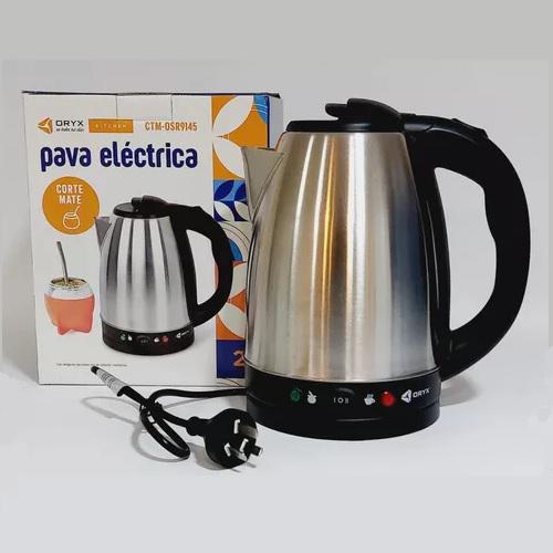 Capacidad: 2 litros %u2013 ACERO INOXIDABLE %u2013 MANIJA FRIA AL TACTO %u2013 Pico vertedor %u2013 Corte: Mate y Cafe + Corte automático al hervir %u2013 Protección contra funcionamiento sin agua %u2013 Base giratoria 360 grados %u2013 Botón apertura automática suave %u2013 Luz roja y verde de indicadores de uso y encendido %u2013 Función de Agua siempre caliente.