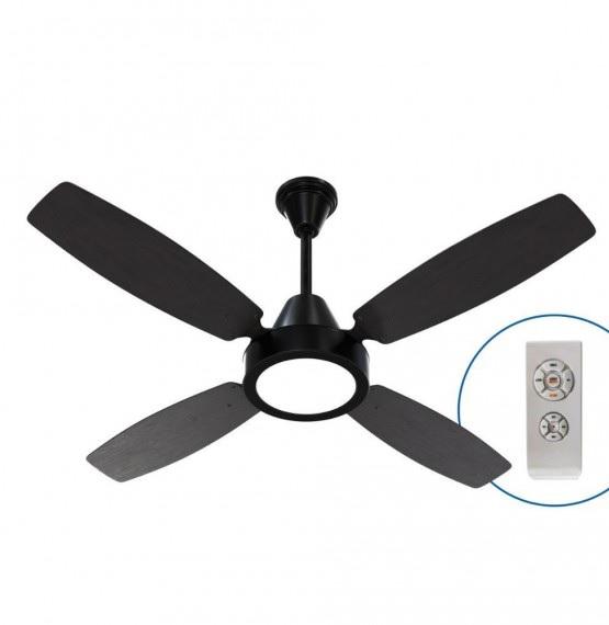 Ventilador de Techo 4 palas negro o marron (reversibles) de 1,20m - 85W de potencia. Su velocidad de 300 revoluciones por minuto proporciona un gran caudal de aire. Pintura en polvo epoxi horneable asegura durabilidad. Incluye una luz plafón led y control remoto, además de 3 velocidades de giro para ajustar el flujo de aire.